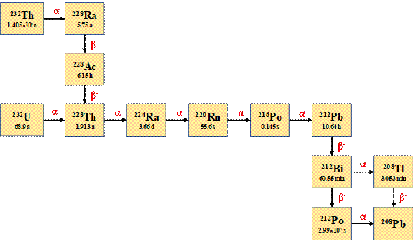 图1 232Th和232U的衰变链