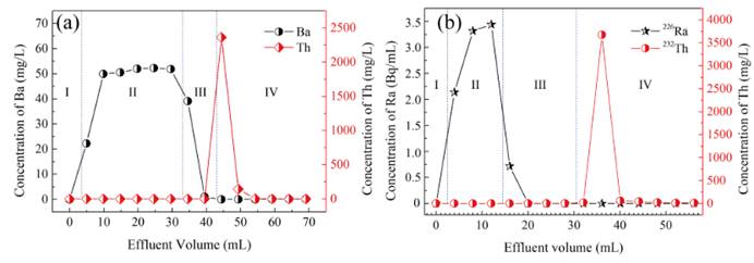 图2 (a)钍和模拟元素Ba的分离;(b)232Th和226Ra的分离