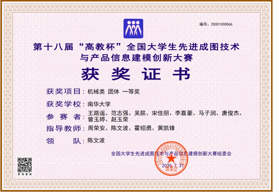 本次大赛吸引了来自全国1001所高校的15500余名学生同台竞技,采用“线上+线下”融合模式进行。我校代表队由机械工程学院副院长陈文波担任领队,经过工程图学教研室周荣安、符纯明、霍绍勇、文群、申龙章等教师团队近一年的系统培训与精心指导,在5月湖南省预选赛基础上,56名学生脱颖而出参与国赛。他们凭借扎实的专业基础、出色的创新设计与三维建模能力,在强手如林的比赛中取得了优异成绩。