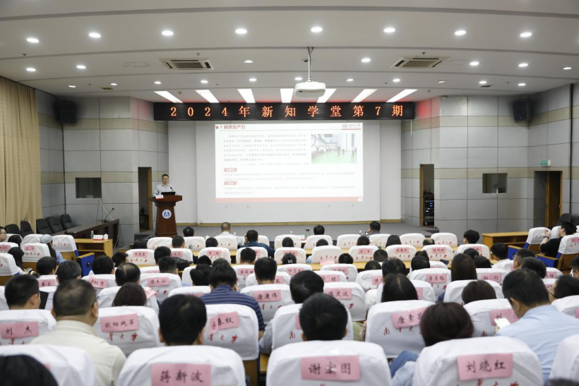全体校领导、党委委员,全体中层正职干部,二级学院副处级干部,第二期青年骨干培训班全体学员,经济管理与法学学院师生代表参加本期新知学堂学习。