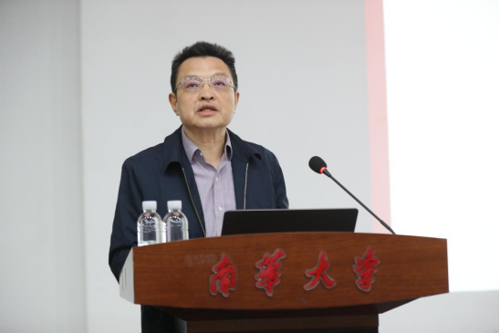 报告会前,李建成一行在雨母校区实地察看了药植园、雨母楼、镜湖,在红湘校区先后调研了“辐射-线粒体与人类重大疾病”国家重点实验室培育基地、环境医学与放射卫生研究所、肿瘤分子生物学与标志物实验室、磁约束聚变研究中心、氡湖南省重点实验室、“辐射防护与环境保护”国防特色学科实验室、科创楼理工类高层次人才科研成果展示区、先进核燃料循环化工研究中心,详细了解了各科研平台团队建设、科研创新、成果转化等具体情况。