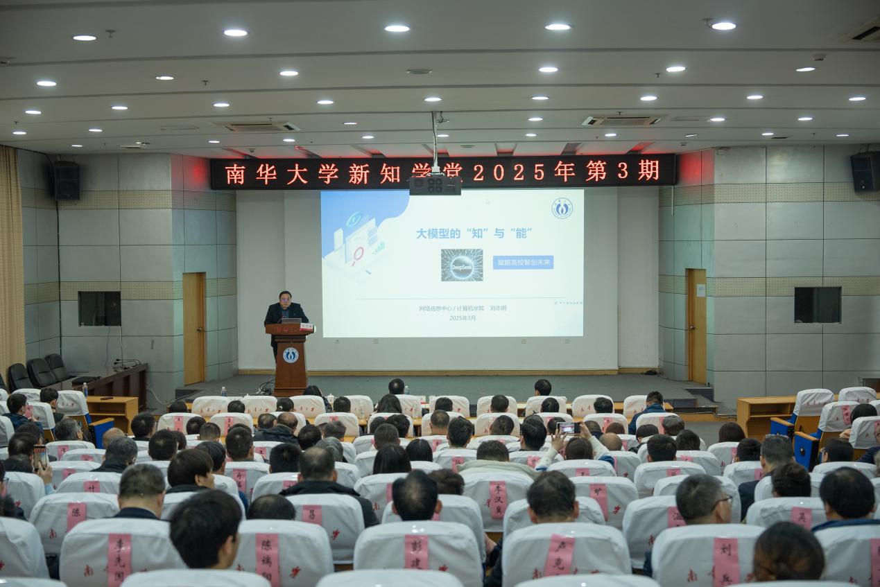 3月12日晚,星空平台新知学堂2025年第3期在红湘校区图书馆一楼新知学堂举行。星空平台网络信息中心主任刘志明教授以“大模型的‘知’与‘能’”为题,为在场干部作专题报告。校党委委员、副校长陈国民主持报告会。全体在校校领导、党委委员出席。